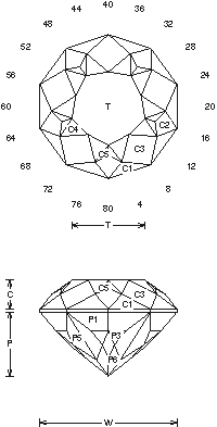 Addition # 1 - Note 80 index. It helps to rough in the table before you cut the C5 facets, that way it's easier to get things to meet. NOTICE 80 index, this design is a nice change and it will fit a standard mounting, any material, 1-8cts. Cut in refractive indexes 1.62 to 1.93 (83.4%) with no changes.