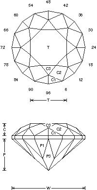 Addition # 1 - This is a pretty standard round brilliant, a nice stone in any size and easy to cut. The crown at 42 degrees is as high as you can go and still have good light return in low R.I. materials. Cut in refractive indexes 1.54 to 1.93 (92.2%) with no changes.