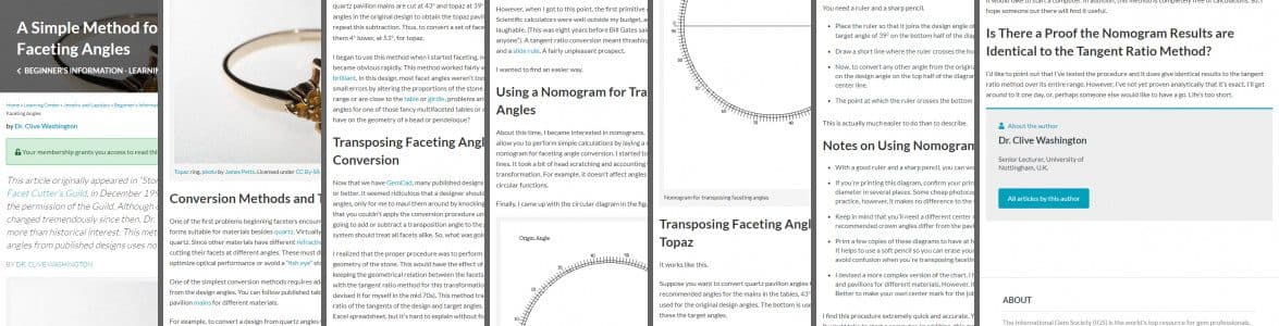 Can something akin to a slide rule help novice faceters today with transposing faceting angles from published gem designs? Check out the calculation-free nomogram method.