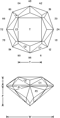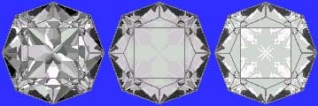 Detailed information and guide on Faceting Designs. A Faceting Design Diagram by Jeff R. Graham that presents various cuts, this one is called "A Star Sq"