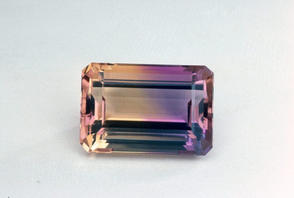 Faceters, cabbers, and carvers all favor ametrine because of its clarity and good size. When this material entered the market in significant quantities in the 1970s, gem cutters preferred emerald-cut shapes with a 50/50 color split. Many still cut rough in this manner.
