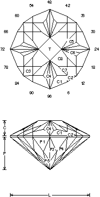 Addition # 8 - This is an interesting cut and it works well in a large stone. Cut it in refractive indexes 1.54 to 1.76 with no changes. Medium saturated materials work well and I like this in Bolivian Amethyst.