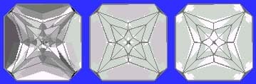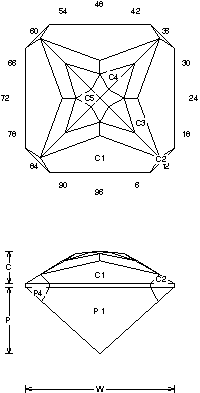 Addition # 9 - Note: The P3(G) is variable, cut it to look like the diagram. The corners can be adjusted to the rough. Cut in refractive indexes 1.54 to 1.76 with no changes. This is fast to cut and works well in a large size stone. Nice in medium colored Garnets.