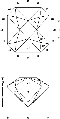 Addition # 7 - If you like my "Tic Tac" design then you will love this one. The crown on this design is very striking in a large sized stone where it can be easily seen. Cut in refractive indexes 1.62 to 1.93 with no changes.
