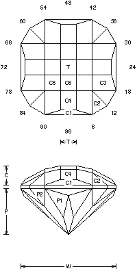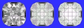 Detailed information and guide on Faceting Designs. A Faceting Design Diagram by Jeff R. Graham that presents various cuts, this one is called "Blue Max".