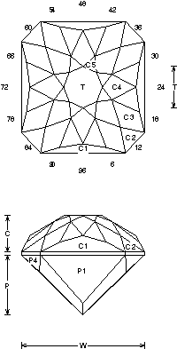 Addition # 9 - This is a little tricky to cut the first time. Note: The P3(G) just cuts in until it looks right, no meet. Cut the C3 as evenly as you can and it only meets at the C2 corners. Once you have cut this right, it will be easy to cut the next time. The corners can and will vary a little. This is designed for lightly saturated rough and works well in refractive indexes 1.54 to 2.14 with no changes.