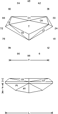 Addition # 4 - This is not easy, it takes experience, I designed it as a necklace stone and usually use trillions on the short ends. It can be cut in another order, it has a nice "V" shaped flash when rocked, any material 1cts+. NOTE: Omit P8 if cutting a small stone.