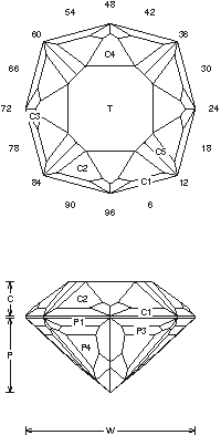 Addition # 3 - This can be a little tricky to cut, the steps take a lot of lining up. I would cut this in a larger size, it works well in about any material. Also this is a good cut for "c" axis Tourmaline, 1-18cts. Cut in refractive indexes 1.62 to 1.93 with no changes.