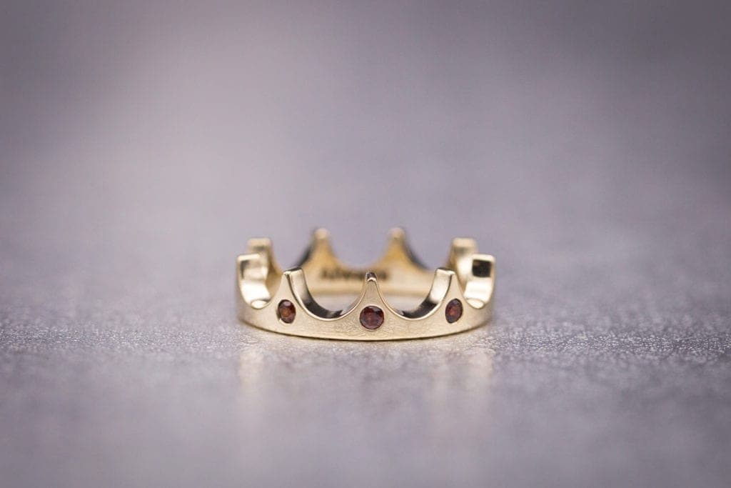 White gold makes the color of the stone stand out in contrast. Rose gold can give red garnets a more updated, modern appeal, lending warmth to the ring.