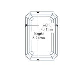 A 0.82-carat emerald-cut diamond from Blue Nile. The length to width ratio of 1.41 gives this emerald-cut diamond its classic rectangular shape.