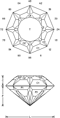 Addition # 3 - This should be cut in a larger stone, the size of the P6,P7 are small and cut very fast. Some of these tiers have no meets, they have to be cut carefully. It can be hard to line up, medium material, 1-16cts. Cut in refractive indexes 1.62 to 1.93 (93%) with no changes.