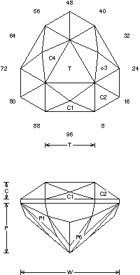 Detailed information and guide on Faceting Designs. A Faceting Design Diagram by Jeff R. Graham that presents various cuts, this one is called "Equall".