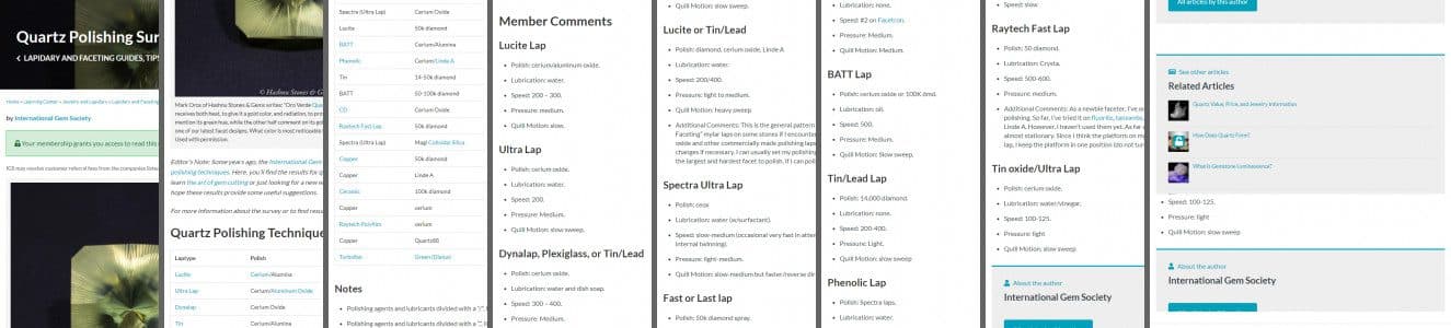 Looking for lap, polish, or lubricant suggestions for quartz polishing? You can find numerous combinations and technical advice in our IGS member survey results.
