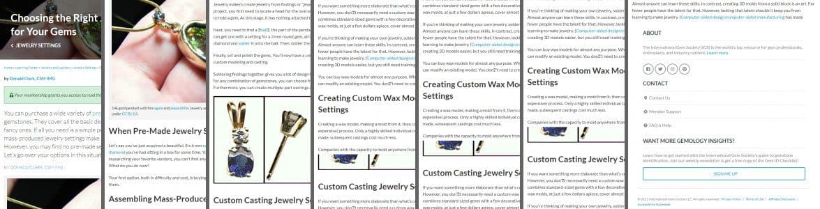 How do you choose jewelry settings for your gems? Learn the pros and cons of pre-made settings, assembling findings, modifying wax models, and custom work.