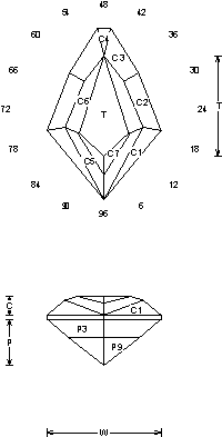 Addition # 7 - This is actually easier to cut than it may look. Cut P1 to P8 and make sure that you have the correct L/W=1.412. NOTE cut the P8 in to get the correct L/W and then cutting P7 is easier… This is not really meet Point. It works well in Tourmaline and Topaz.