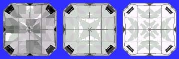 Tips and guide on Faceting Designs. A Faceting Design Diagram by Jeff R. Graham that presents various cuts, this one is called "Float Sq. Check-Reflector".