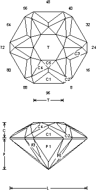 Detailed information and guide on Faceting Designs. A Faceting Design Diagram by Jeff R. Graham that presents various cuts, this one is called "Foiled".