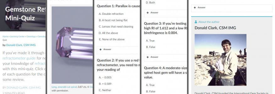 Test your knowledge of refractometer gem analysis with this mini-quiz. You can review material on any question you miss at the end of the quiz.