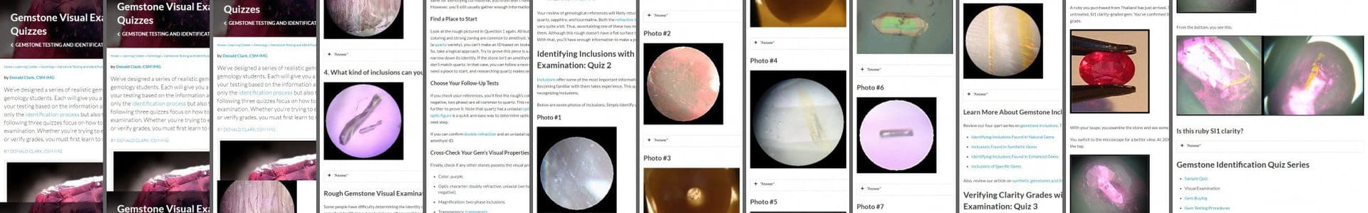 A visual examination is the first step to identifying a gemstone. These quizzes will help student gemologists learn to recognize what they might see.