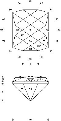 Helpful tips and guide on Faceting Designs. A Faceting Design Diagram by Jeff R. Graham that presents various cuts, this one is called "Gentleman's Choice".