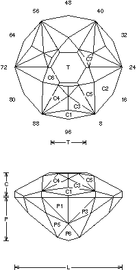 Successful tips and guide on Faceting Designs. A Faceting Design Diagram by Jeff R. Graham that presents various cuts, this one is called "Half-High".