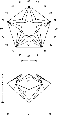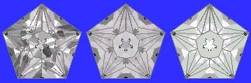 Addition # 9 - This is a Mirage cut because it only has 51 facets and when finished will look like 150 facets. As you can see, this is a fairly traditional cut and not hard to do. Use light to medium saturated material and cut in refractive indexes 1.62 to 1.76 with no changes.