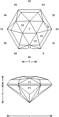 Addition # 6 - This is a neat design and it cuts fast. I like it in about any material. This design can be cut in refractive indexes 1.54 to 1.93 (87.9%) with no changes. It is really a "Money Cut" and I like it for earrings…