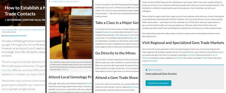 If you’re enrolled in the IGS Professional Gemologist course, look for gemology-focused weekend workshops in your area. These may be offered at community colleges, trade schools, or recreational centers. Or, if you’re a more advanced student of gemology, consider leading a workshop yourself. Local jewelers — with their own professional networks — may show up and add you to their gem trade contacts.