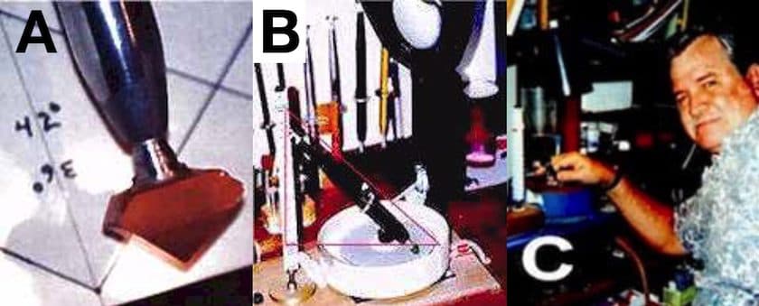 Faceting gemstones consists of mounting gem rough on a dowel or dop stick, which fits into the quill of a faceting machine. Next, the faceter touches the gem rough to abrasive laps in two sequential operations. First, they cut the top of the gem or crown, then the bottom or pavilion. What makes those beautiful, bright and tiny facets possible is the Height-Angle-Index triangle, which locks the gem rough in place.