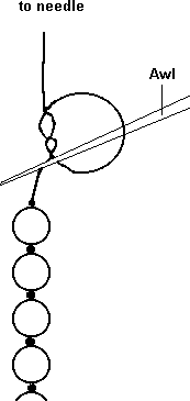If the knot tightens before it reaches the bead, you still have the awl in it. You can loosen the knot by wiggling the awl around. Then proceed again until it is in the correct position. It only takes a little practice to do well and just a little more to do quickly and gracefully.