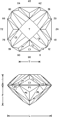 Successful tips and guide on Faceting Designs. A Faceting Design Diagram by Jeff R. Graham that presents various cuts, this one is called "Icon Square".