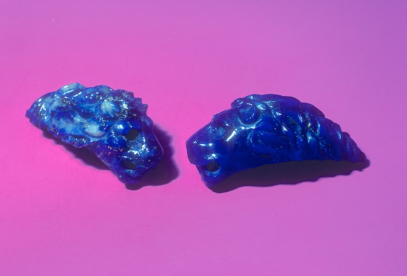 Although synthetics are modern inventions, lapis lazuli simulants or imitations go back at least as far as Ancient Egyptian times. Archeologists have discovered artifacts with glass backed with blue paint and blue ceramic materials in lieu of the natural stone. Even the celebrated death mask of King Tutankhamun (1332-1323 BCE), which includes real lapis lazuli inlay for the eyes, has blue-painted glass bands in the nemes or headdress. These imitations are a testament to the ancient demand for lapis.