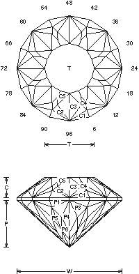 Detailed information and guide for Faceting Design Diagrams. This facet design is called a "Light Star". It has a nice light return, higher than the 63%.