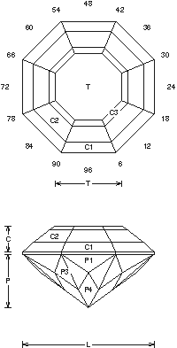 Gram Book 1 - I designed this cut for some nice roundish Montana material that I bought. It cuts easy and makes a nice 1ct+ stone. Cut the steps on the crown to your taste, varied widths are better, I think. Cut in refractive index 1.78 to 1.93 (80.1%) with no changes.