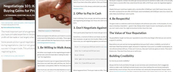 Before we explore the skill sets you’ll need to succeed at negotiating gem prices, you must understand the following four principles. These apply to any negotiations in any business. In addition, don’t underestimate the importance of your reputation and credibility, especially in the people-oriented gemstone business.