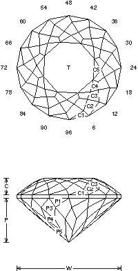 Addition # 2 - This design is for light to med material, 1-16cts. It has a nice uneven sparkle in every direction and is fun to cut because of it's odd symmetry. Cut in refractive indexes 1.54 to 2.14 (91.4%) with no changes.