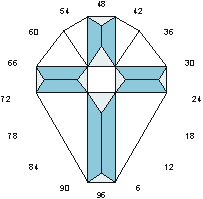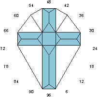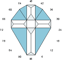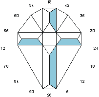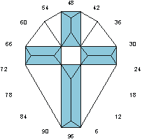 Information and guide on Faceting Designs. An Online Faceting Design Diagram by Jeff R. Graham that presents various cuts, this one is called "Angel Cross".