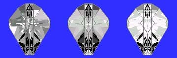 Above left to right… Frost the entire outside of the cross - Frost the entire outside of the cross and then use a finer frost on triangular accent facets (lighter blue) polish the rest of the cross (this is the one I like) - Frost the main body of the cross and use a finer frost (lighter blue) on the accent triangular facets.