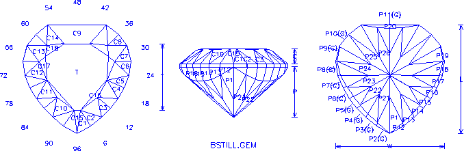 While reviewing my references for ideas and approaches to heart-shaped cuts, I noticed a marked scarcity of Barion hearts. This is unfortunate, because a Barion heart offers a number of advantages over more conventional heart designs. For example, it reduces the elevation angle changes needed to cut the pavilion and increases the gem's optical performance. And these aren't the least of the benefits.