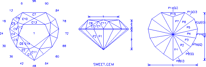 This design makes a really nice heart shape. It reads well from a distance, with lots of flash and dispersion. I designed the pavilion so you can cut this design in tourmaline, topaz, peridot, garnet, spinel, and sapphire without changes.