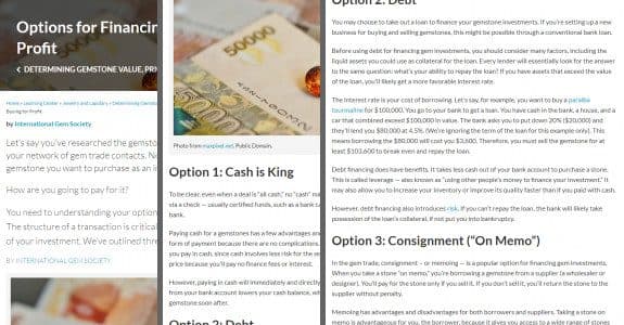 How should you pay for investment gems? Learn the pros of cons of three options for financing gem investments — cash, debt, and memoing.