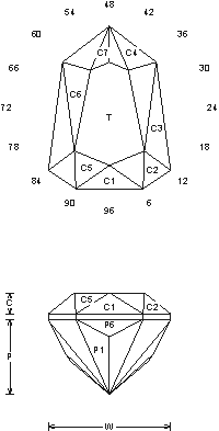 Addition # 4 - This is designed to be used in sets, it cuts pretty easy and has a nice flash. It works well around a square or trillion. Cut in about any material, I prefer medium color, 1/2ct and up. This works in Topaz… Cut this in R.I. 1.62 to 2.14 without changes.