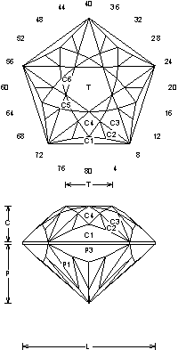 Addition # 7 - This is great in light to medium colored Quartz with no changes. Cut this in refractive indexes 1.54 to 2.14 with no changes. This is really nice in light Beryl. C2 on the crown is just cut to center point like P1 is.