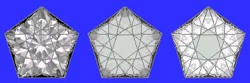 Successful tips and guide on Faceting Designs. A Faceting Design Diagram by Jeff R. Graham that presents various cuts, this one is called "Penta Brilliant".