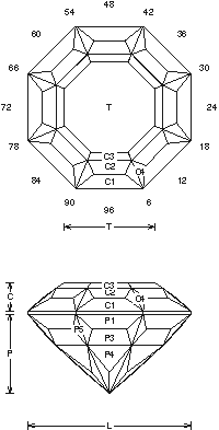 Addition # 1 - This design is a little hard to cut. The steps on the bottom are about even, the top steps get smaller as they go to the table. The steps can be cut to your own taste, 1-16cts. Cut in refractive indexes 1.54 to 1.93 (83.9%) with no changes. This cuts well in Beryl, Feldspar (Sunstone),and Topaz.