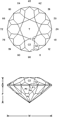 Addition # 3 - This design is shallow to help lighten up dark material and has a very nice flash. The larger facets on the crown read well from a distance. Cut in refractive indexes 1.73 to 2.14 with no changes.