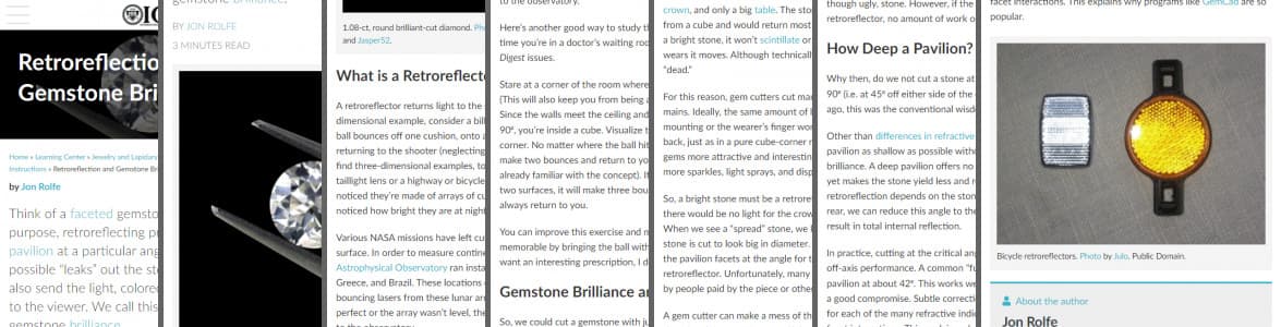 How is a faceted gem like a retroreflecting prism? Learn to distinguish gemstone brilliance from scintillation and how gem cutters choose pavilion angles.