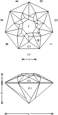 Addition # 9 - This is quite interesting and not difficult to cut. It works well in any material. I like it in Garnets. Cut in refractive indexes 1.54 to 2.14 with no changes. This is a bright design and has a ton of sparkle.