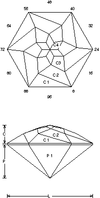 Addition # 9 - This one is just fast and fun to cut. I have several other cuts similar to this, but the reflections on this one are quite nice. Any material, about any size. A table is a good idea on large stones. Cut in refractive indexes 1.54 to 1.93 no changes.