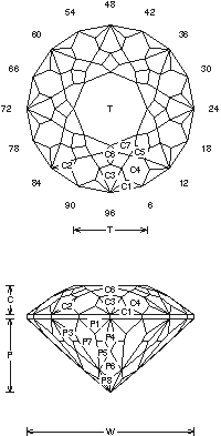 Addition # 1 - This design makes a nice stone in light material and because of the number of facets I cut it in a large size. It's reflection is higher than it ray traces and takes some work to cut. Cut in refractive indexes 1.62 to 1.93 (89.1%) with no changes.